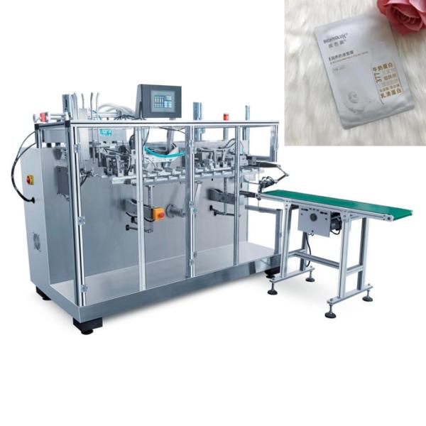 It is suitable for quantitative packaging of mask, wet towel, granule , powder and other objects. Automatic feeding, metering, filling and sealing, printing date, the whole process of conveying and discharging. It has high precision and efficiency. The sealing is firm, smooth and beautiful. Suitable for kinds of specifications prefabricated bags, such as four side sealing bags, special-shape bags, self-supporting bags, etc.